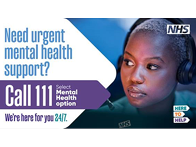 If you, or someone you know, are in a mental health crisis and need urgent support, you can now call NHS 111 and select the mental health option.
